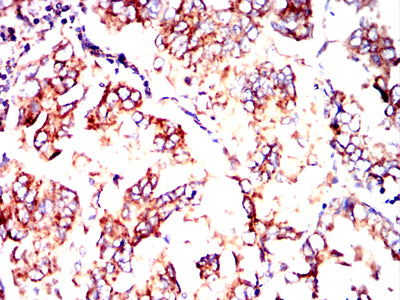 Immunohistochemical analysis of paraffin-embedded human lung cancer tissues using PDHA1 mouse mAb with DAB staining.