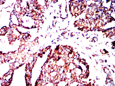 Immunohistochemical analysis of paraffin-embedded human breast cancer tissues using PDHA1 mouse mAb with DAB staining.