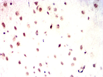 Immunohistochemical analysis of paraffin-embedded rat brain tissues using MRE11 mouse mAb with DAB staining.