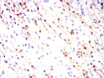 Immunohistochemical analysis of paraffin-embedded human ovarian cancer tissues using ID3 mouse mAb with DAB staining.
