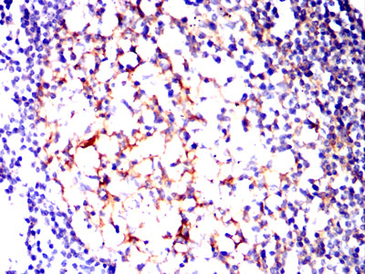 Immunohistochemical analysis of paraffin-embedded human lymph tissues using CD82 mouse mAb with DAB staining.