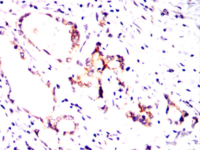Immunohistochemical analysis of paraffin-embedded human gastric cancer tissues using ATM mouse mAb with DAB staining.