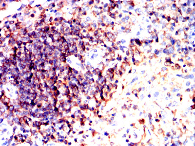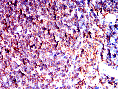 Immunohistochemical analysis of paraffin-embedded Rabbit spleen tissues using ATM mouse mAb with DAB staining.