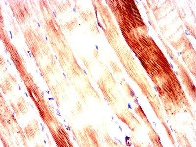 Immunohistochemical analysis of paraffin-embedded Rat myocardium tissues using ATM mouse mAb with DAB staining.