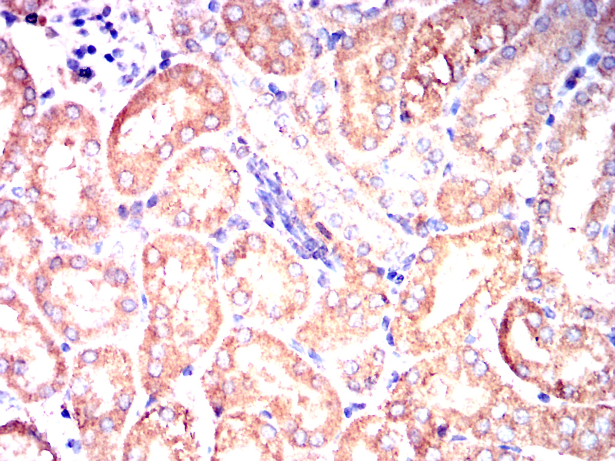 Immunohistochemical analysis of paraffin-embeddedrat rabbit kidney tissues using IL6 mouse mAb with DAB staining.