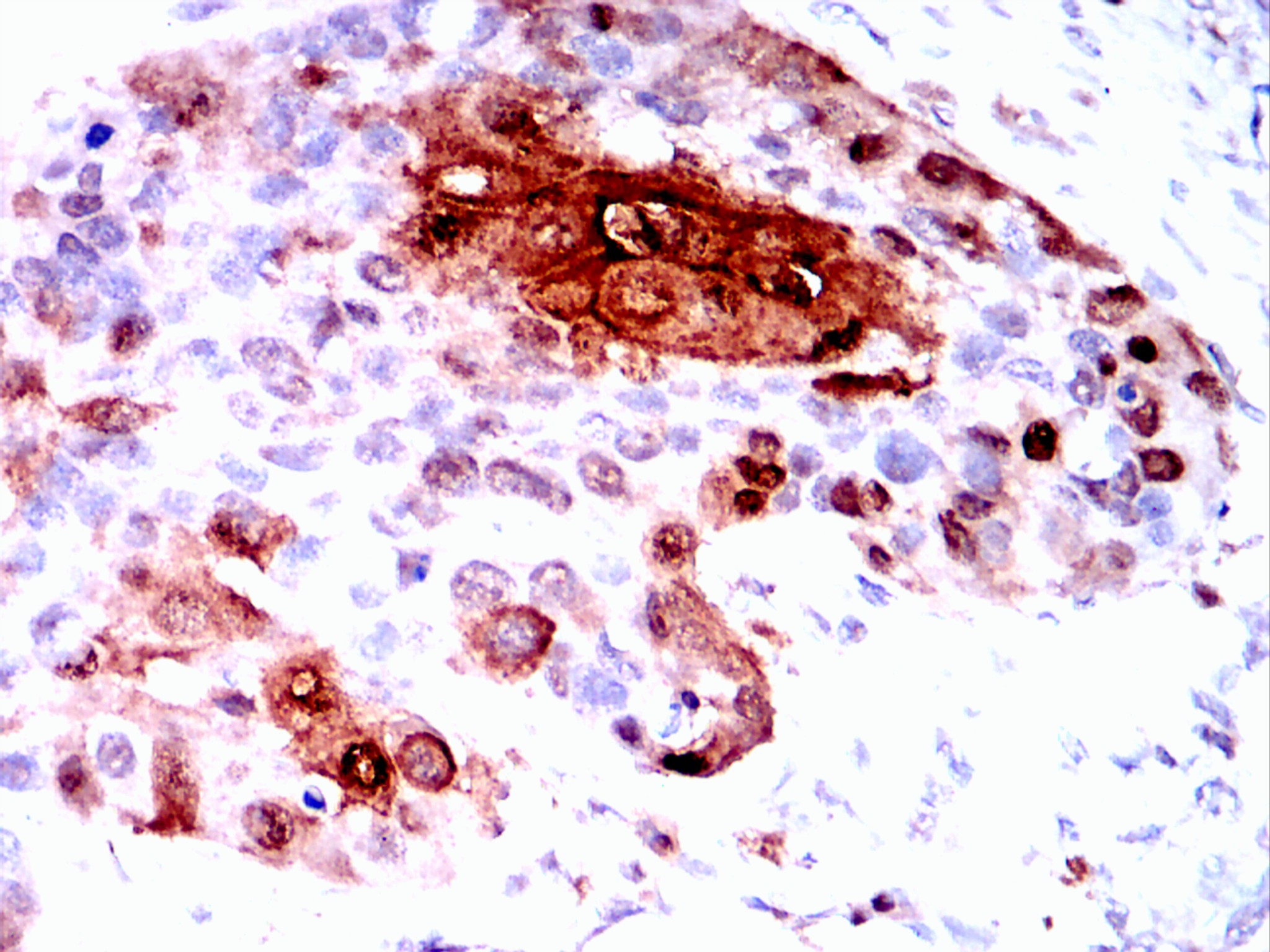 Immunohistochemical analysis of paraffin-embedded esophageal cancer tissues using Visfatin(PBEF) mouse mAb with DAB staining.