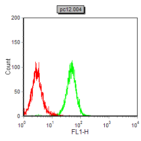 Flow cytometric analysis of PC-12 cells using HSPA5 mouse mAb (green) and negative control (red).