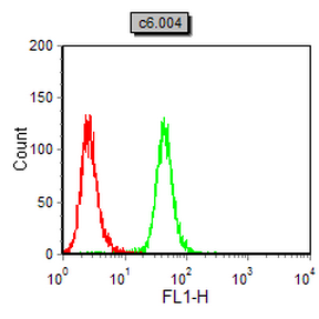 Flow cytometric analysis of C6 cells using CD276 mouse mAb (green) and negative control (red).
