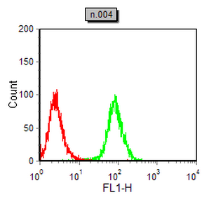 Flow cytometric analysis of NIH/3T3 cells using CD276 mouse mAb (green) and negative control (red).