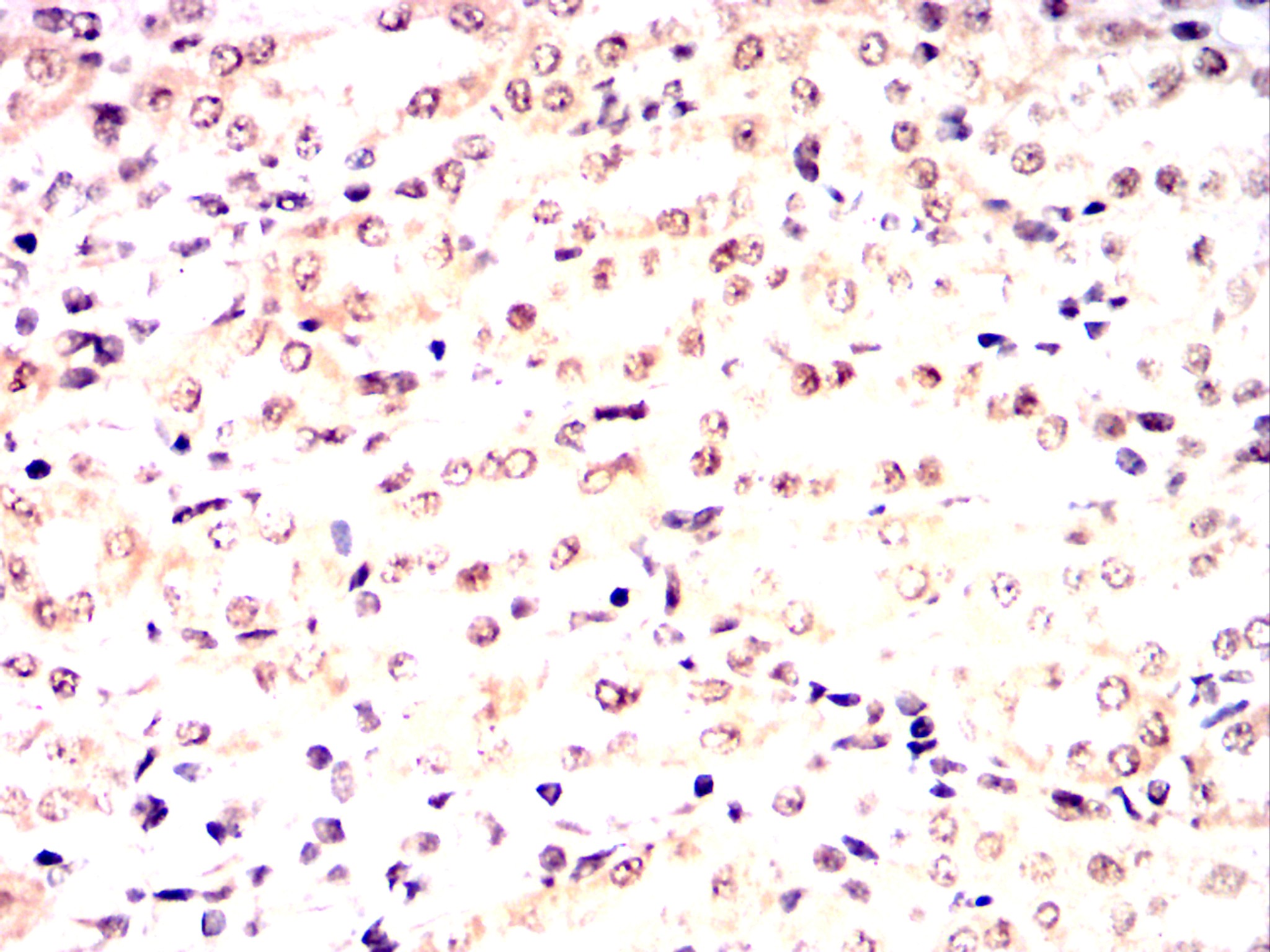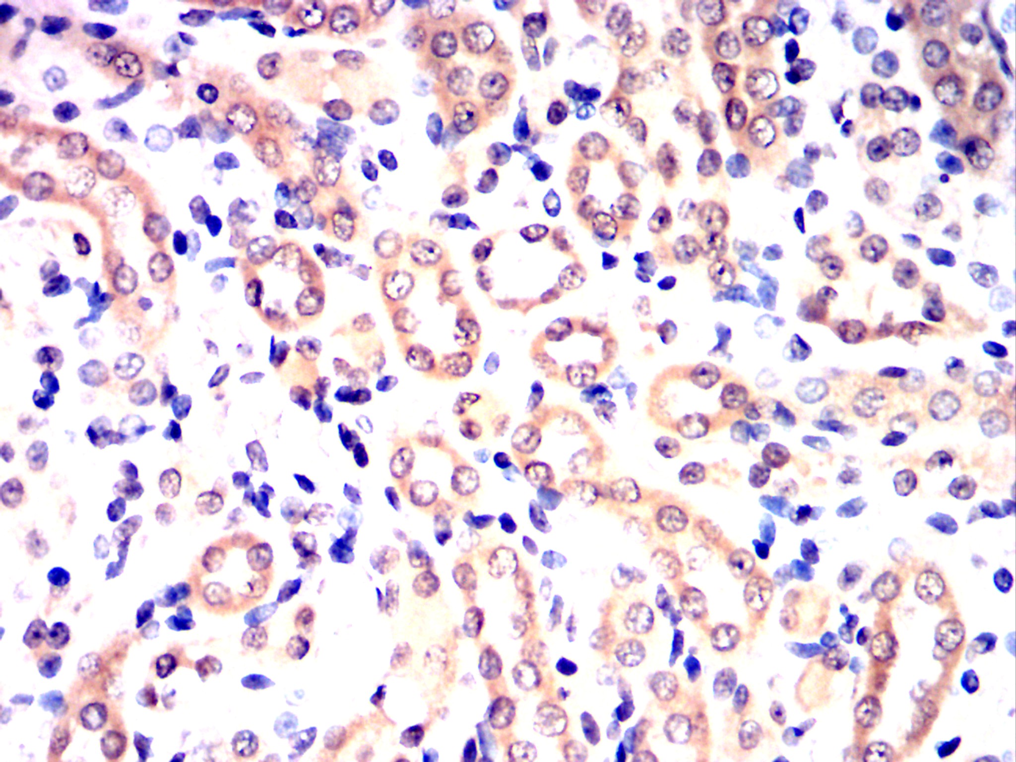 Immunohistochemical analysis of paraffin-embedded Rat kidney using CDK9 mouse mAb with DAB staining.