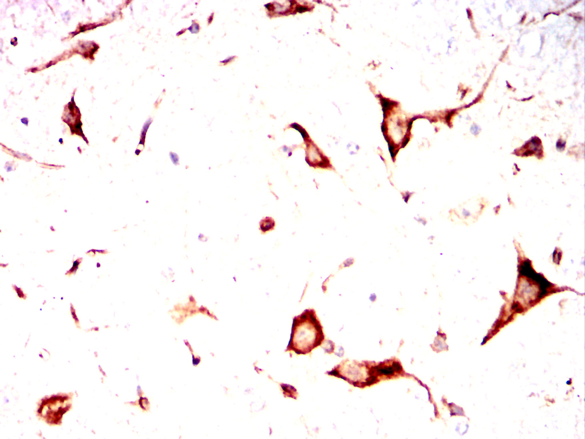 Immunohistochemical analysis of paraffin-embedded Rabbit spinal cord(A)Rabbit kidney(B) using FOXO1 mouse mAb with DAB staining.