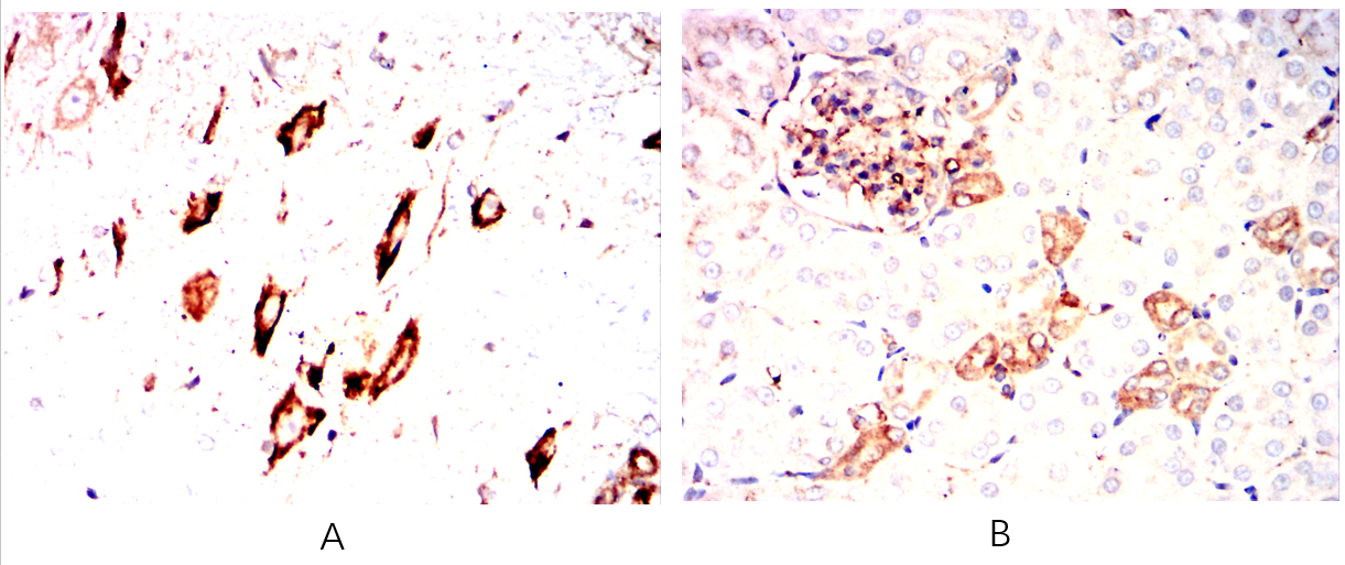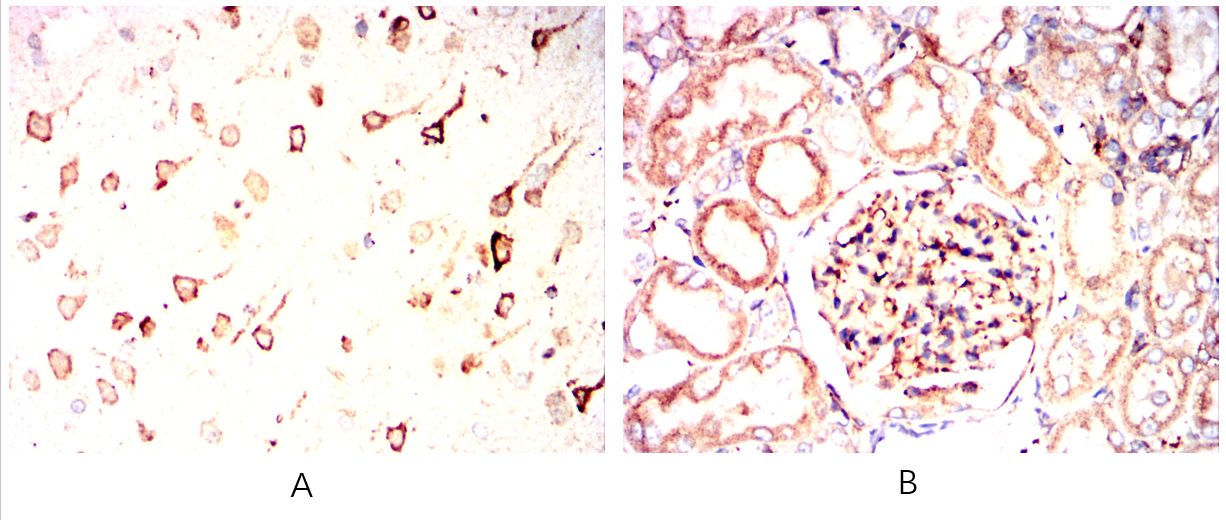 Immunohistochemical analysis of paraffin-embedded Rat brain(A)Rat kidney(B) using FOXO1 mouse mAb with DAB staining.