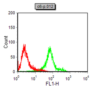 Flow cytometric analysis of C6 cells using NOS2 mouse mAb (green) and negative control (red).