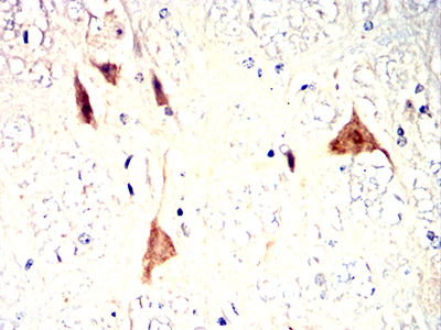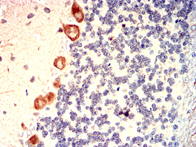 Immunohistochemical analysis of paraffin-embedded Rat cerebellum using MAP1LC3B mouse mAb with DAB staining.