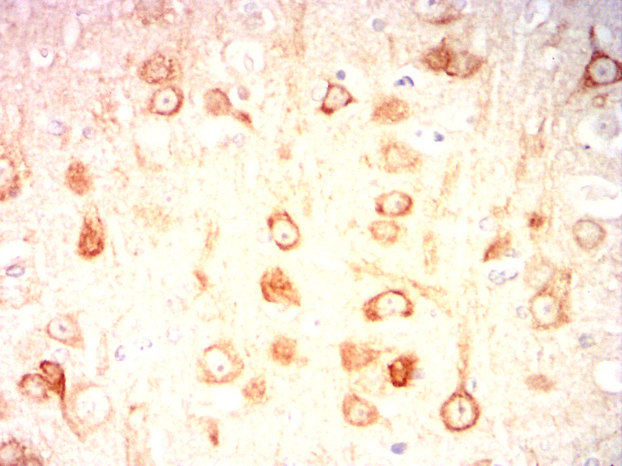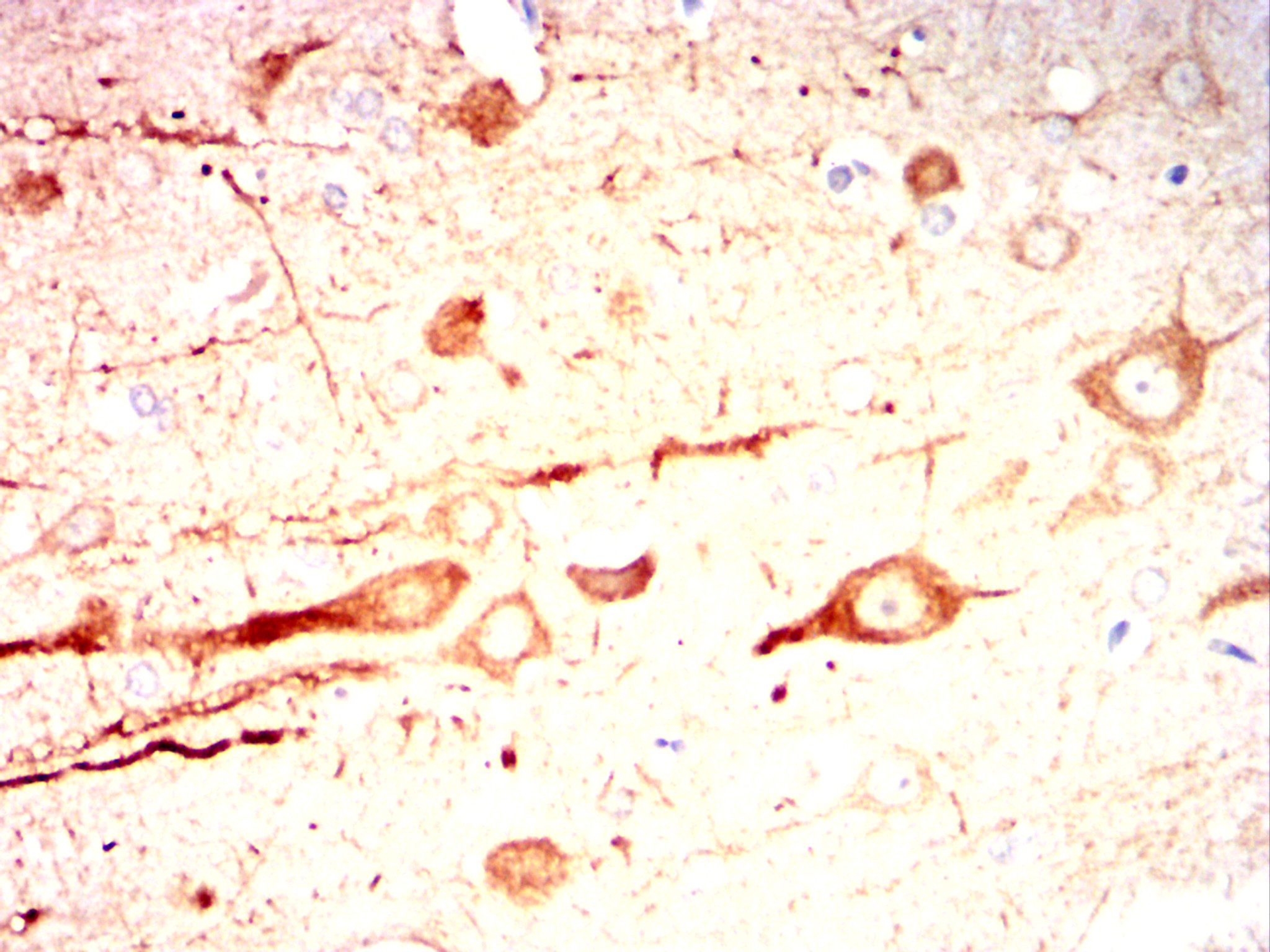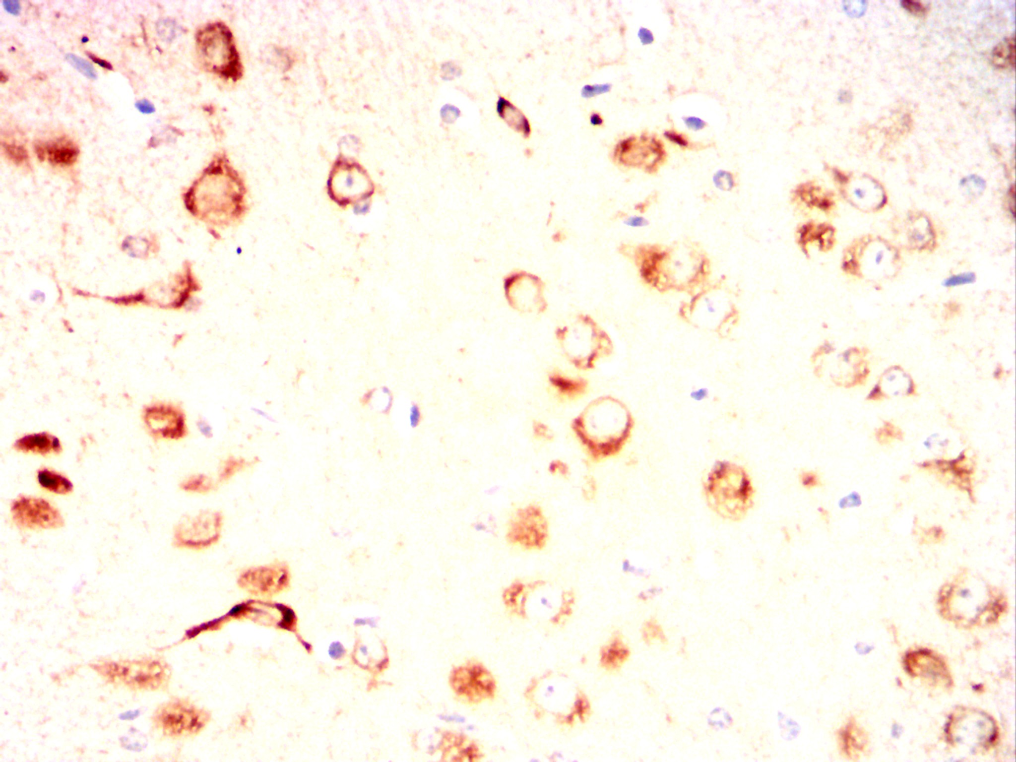 Immunohistochemical analysis of paraffin-embedded Rabbit brain using KEAP1 mouse mAb with DAB staining.