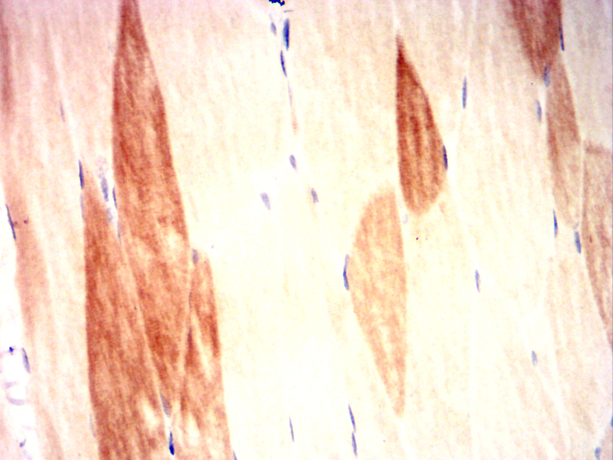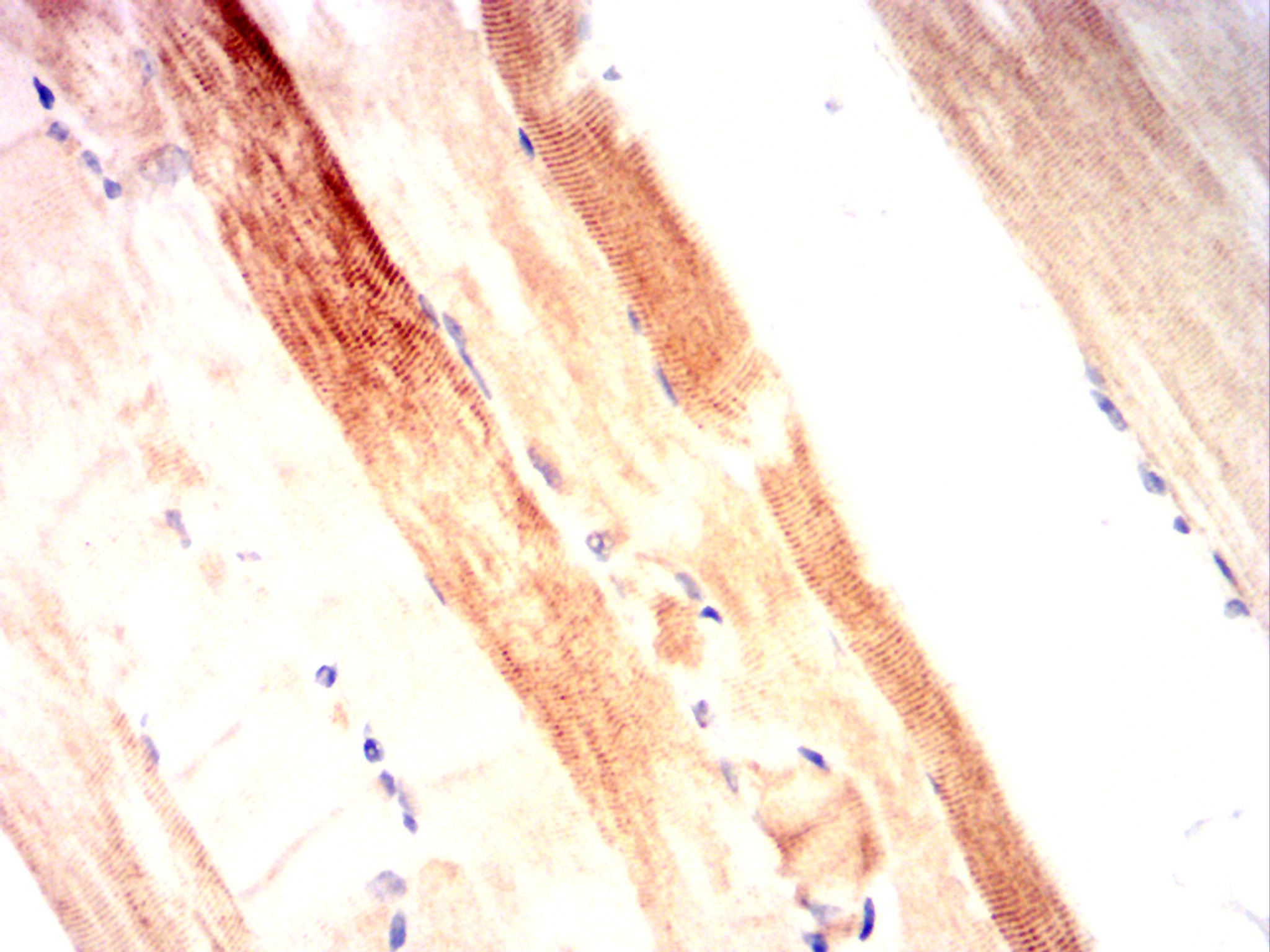 Immunohistochemical analysis of paraffin-embedded Rat muscle using KEAP1 mouse mAb with DAB staining.