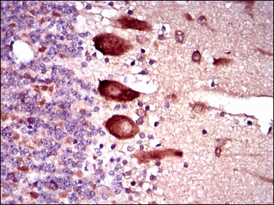 Immunohistochemical analysis of paraffin-embedded human cerebellum tissues using KEAP1 mouse mAb with DAB staining.