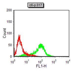 Flow cytometric analysis of C6 cells using MEF2C mouse mAb (green) and negative control (red).