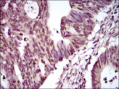 Immunohistochemical analysis of paraffin-embedded rectum cancer tissues using PIWIL4 mouse mAb with DAB staining.