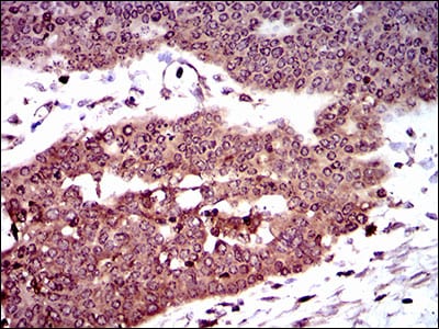 Immunohistochemical analysis of paraffin-embedded human cervical cancer tissues using DCTN4 mouse mAb with DAB staining.
