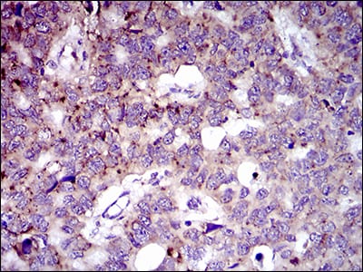Immunohistochemical analysis of paraffin-embedded human breast cancer tissues using MRPL42 mouse mAb with DAB staining.