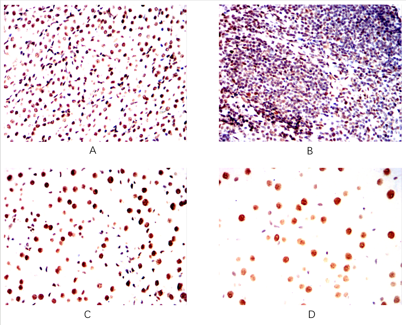 Immunohistochemical analysis of paraffin-embedded Mouse kidney(A)Mouse spleen(B)Mouse liver(C)Mouse brain(D) using TWIST1 mouse mAb with DAB staining.