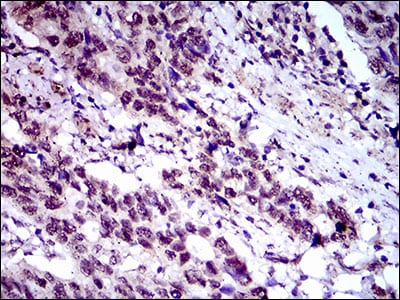 Immunohistochemical analysis of paraffin-embedded human cervical cancer tissues using CFLAR mouse mAb with DAB staining.