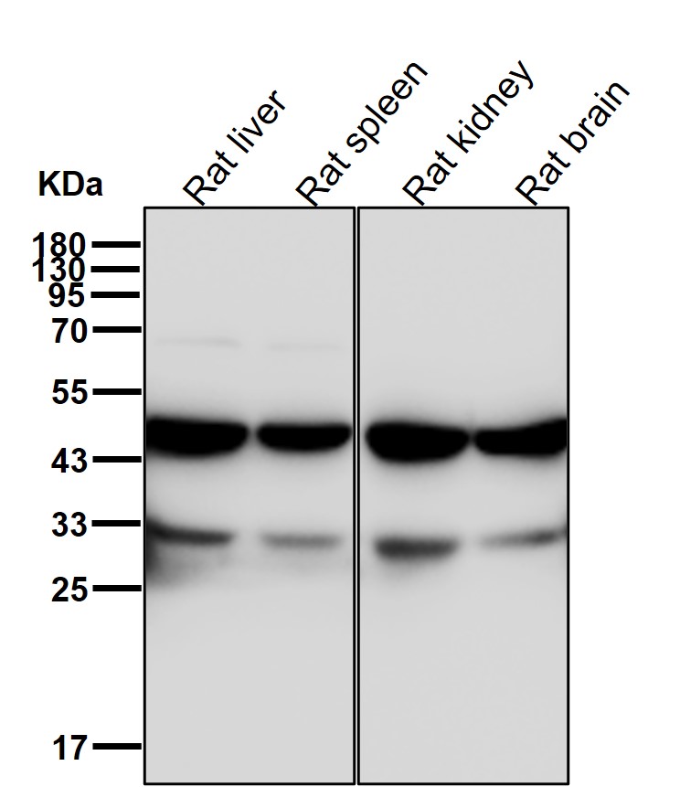 分类: 科研抗体货号: P17760别名: Apoferritin; F HC; Ferritin H subunit; FHC; FRIH; FTH; FTH1; FTHL6; N-terminally processed; PIG15; PLIF;;Ferritin heavy chain应用: WB;IHC反应种属: Human