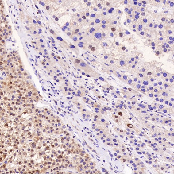 Immunohistochemical analysis of paraffin-embedded Human liver cancer, using the Antibody at 1:200 dilution.