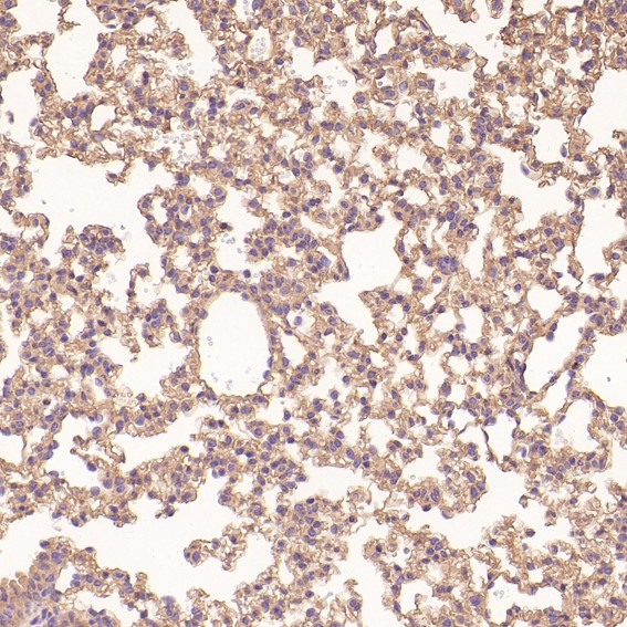 Immunohistochemical analysis of paraffin-embedded Mouse lung, using the Antibody at 1:100 dilution.