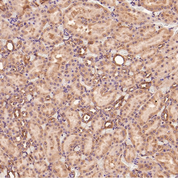 Immunohistochemical analysis of paraffin-embedded Rat kidney, using the Antibody at 1:100 dilution.