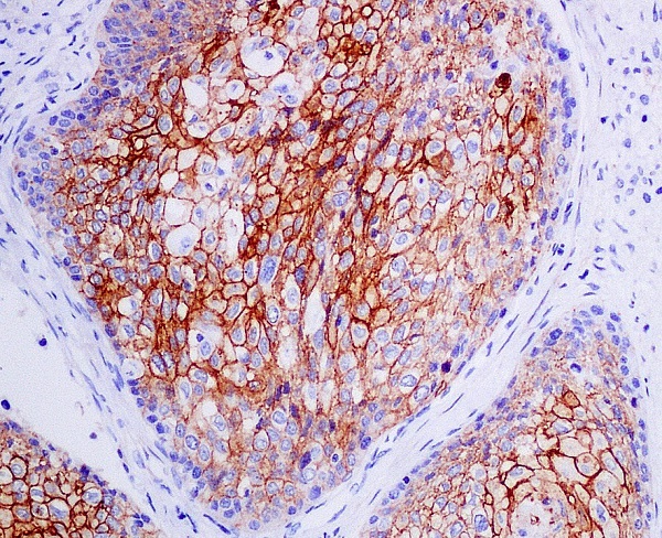 Immunohistochemical analysis of paraffin-embedded human cervical carcinoma, using CXCR4 Antibody.