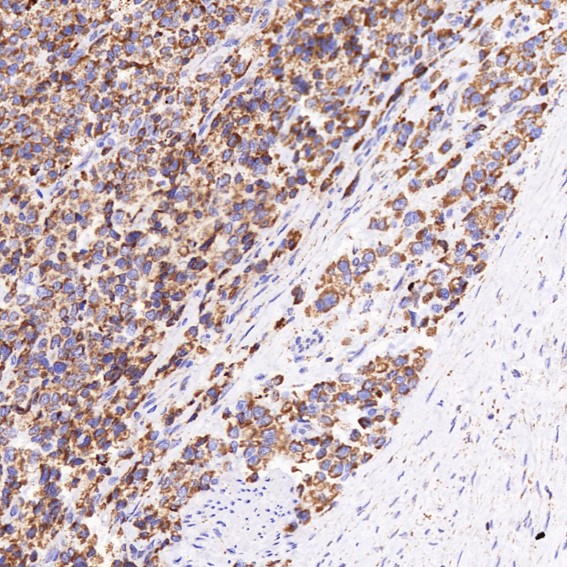 Immunohistochemical analysis of paraffin-embedded Human prostate cancer, using the Antibody at 1:200 dilution.
