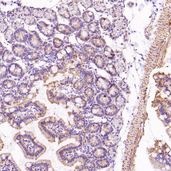 Immunohistochemical analysis of paraffin-embedded Mouse intestine, using the Antibody at 1:200 dilution.