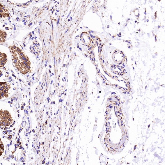 Immunohistochemical analysis of paraffin-embedded Human stomach, using the Antibody at 1:200 dilution.