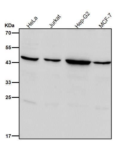 All lanes use the Antibody at 1:2K dilution for 1 hour at room temperature.