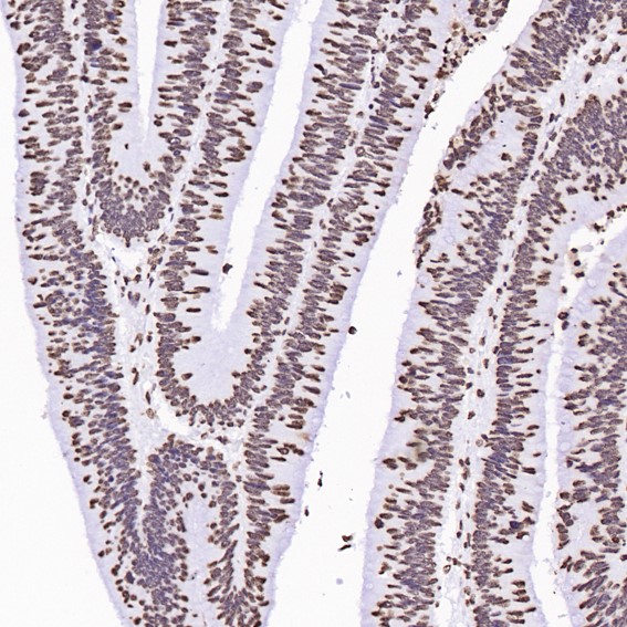 Immunohistochemical analysis of paraffin-embedded Human colon cancer, using the Antibody at 1:200 dilution.