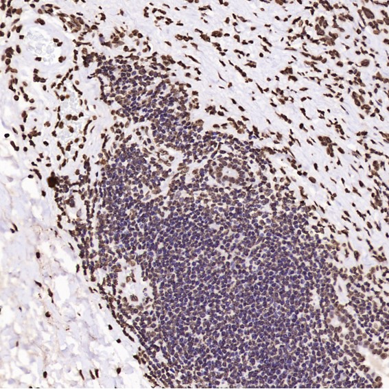 Immunohistochemical analysis of paraffin-embedded Human tonsil, using the Antibody at 1:200 dilution.