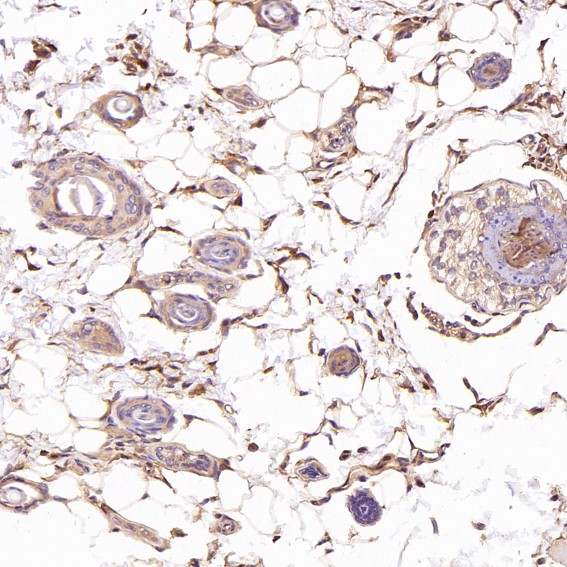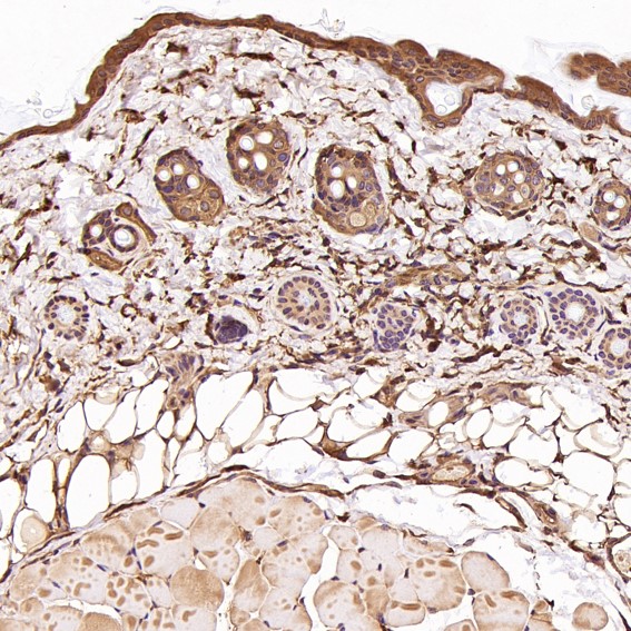 Immunohistochemical analysis of paraffin-embedded Mouse skin, using the Antibody at 1:200 dilution.