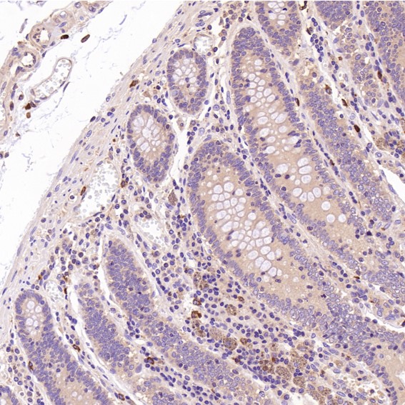 Immunohistochemical analysis of paraffin-embedded Human colon, using the Antibody at 1:100 dilution.