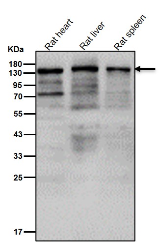 | WB Predicted band size | Calculated MW: 142 kDa ; Observed MW: 141 kDa |
