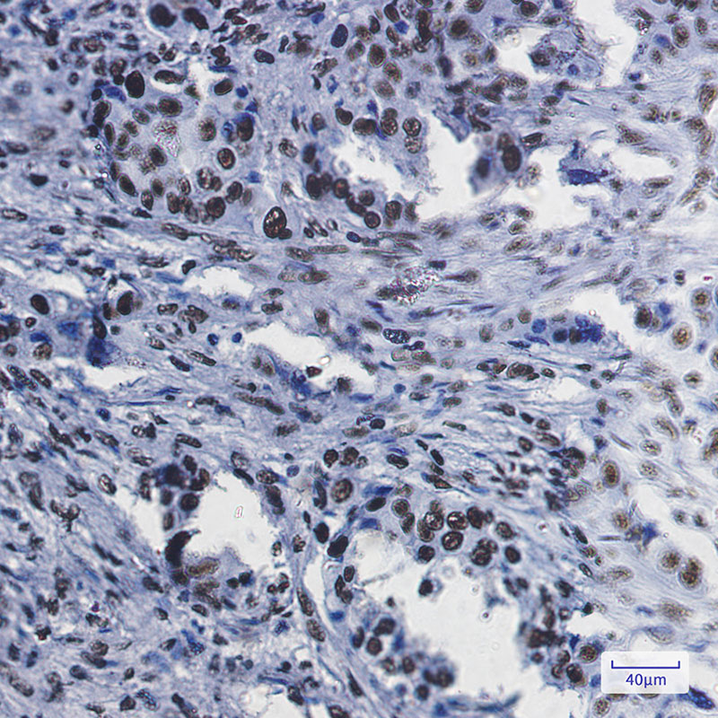 Immunohistochemistry analysis of paraffin-embedded Human lung cancer using RbAp48 antibody.High-pressure and temperature Sodium Citrate pH 6.0 was used for antigen retrieval.