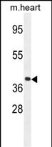 GNA15 Antibody (C-term) (Cat. #P33693) western blot analysis in mouse heart tissue lysates (35ug/lane).This demonstrates the GNA15 antibody detected the GNA15 protein (arrow).