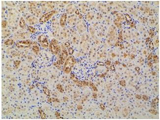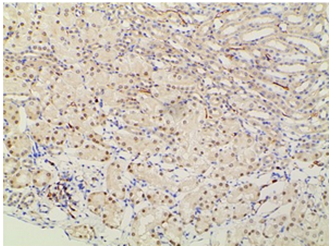 21196-lot 7326 at 1/100 staining rat kidney tissue sections by IHC-P. The tissue was formaldehyde fixed and a heat mediated antigen retrieval step in citrate buffer was performed. The tissue was then blocked and incubated with the antibody for 1.5 hours at 22°C. An HRP conjugated goat anti-rabbit antibody was used as the secondary.