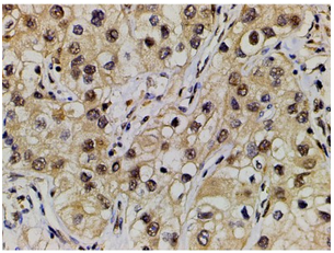 21196-lot 7326 at 1/200 staining human renal clear cell carcinoma tissue sections by IHC-P. The tissue was formaldehyde fixed and a heat mediated antigen retrieval step in citrate buffer was performed. The tissue was then blocked and incubated with the antibody for 1.5 hours at 22°C. An HRP conjugated goat anti-rabbit antibody was used as the secondary.