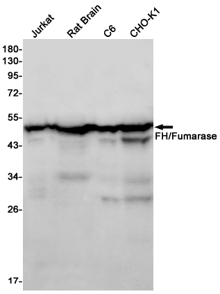 分类: 科研抗体货号: P21392别名: Fumarate hydratase; mitochondrial; Fumarase应用: WB,IP,IHC,IF反应种属: Human,Mouse,Rat,Hamster
