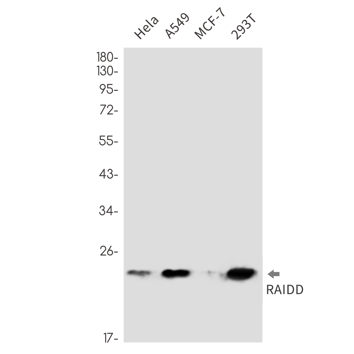 分类: 科研抗体货号: P22552别名: CRADD; MGC9163; RAIDD; Death adaptor molecule RAIDD; Death domain containing protein CRADD应用: WB,IP,IF反应种属: Human